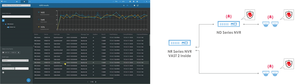 Permite integrar los eventos de ataques de ciberseguridad desde las cámaras y NVRs de VIVOTEK a la administración de alarmas de VAST 2. Además de la activación y notificación de alarmas, VAST 2 se convierte en el sitio de administración central para reconocer las tendencias de ataques y estados, así como para obtener información sobre los ataques.