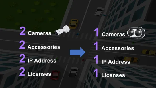Una única instalación proporciona cobertura completa y facilita la implementación. Además, con un número reducido de cámaras, también se reducen los costos de licencias y mantenimiento.