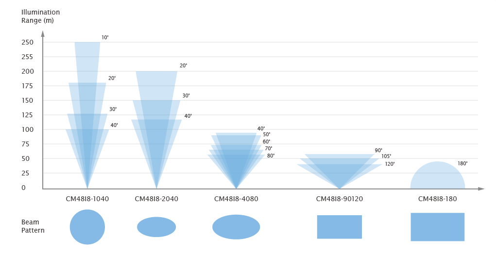 Iluminador IR, 48W, 24 LEDs IR, 850nm, 10° ~ 180° Ángulo de haz ajustable