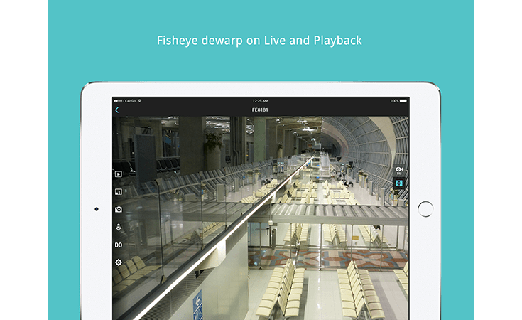 La corrección de distorsión esférica de ojo de pez de las cámaras VIVOTEK también puede realizarse desde la app. Los usuarios pueden elegir los modos 1O, 1P, 1R de la cámara ojo de pez y utilizar ePTZ para ver transmisiones desde diferentes ángulos.