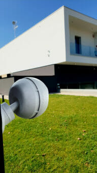 En un diámetro de unos 12 cm solamente, este pequeño radar incluye el protector superior de lluvia, el paso interno del cable y un soporte especial incorporado, que permite una inclinación máxima de 75 ° en relación con la pared, inclinándose en todas las direcciones.