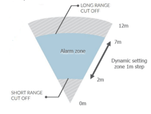 Gracias a la tecnología FSK y los algoritmos de lógica difusa que proporcionan una excelente identificación y clasificación del objetivo en términos de riesgo, podemos seleccionar la dimensión del objetivo para discriminar los intentos de intrusión humana de diferentes situaciones que ocurren (por ejemplo, vehículos en movimiento, animales pequeños, etc.).