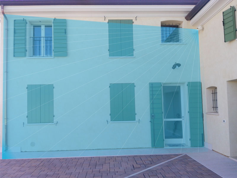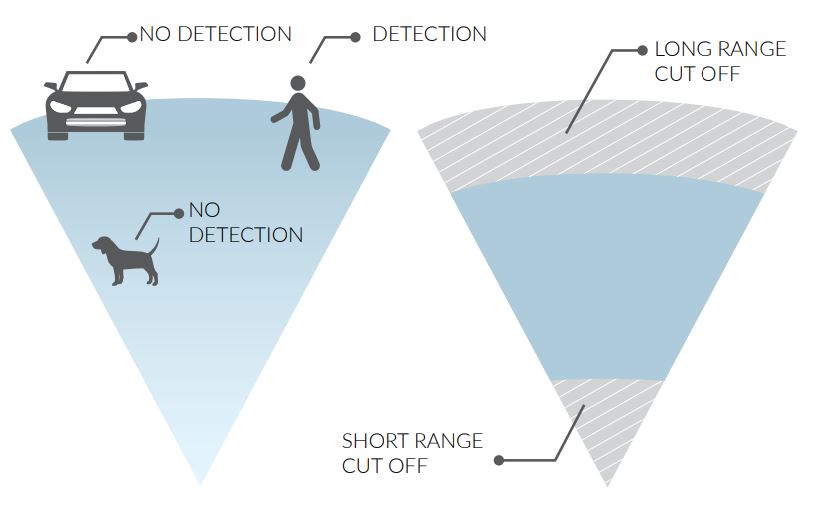 Una de las características más interesantes del producto es la posibilidad de establecer análisis de la zona junto con la dimensión del objetivo que se quiere detectar, evitando realmente sin ningún compromiso las falsas alarmas habituales que pueden ser causadas por pequeños animales o grandes objetos en movimiento, como los coches que pasan.