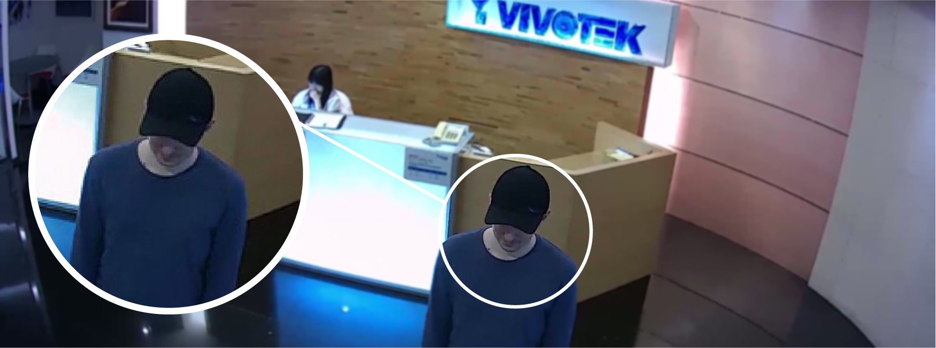 La cámara CC9160(HS) proporciona imágenes faciales más claras que los dispositivos montados en techos, especialmente cuando los sujetos llevan sombreros o capuchas.